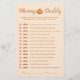 Célébrez votre baby shower d'automne avec ce jeu amusant "Devinez qui maman ou papa" avec un design citrouille charmant. Parfait pour un thème de baby shower citrouille, cette carte ajoute un charme ludique à vos thèmes de baby shower de septembre, à vos idées de baby shower d'octobre ou à vos idées de baby shower de novembre. Que vous planifiez une réunion confortable ou que vous cherchiez des idées de baby showers d'automne, cela correspond parfaitement aux thèmes du baby shower d'automne et à nos petites idées de baby showers citrouilles. Un must pour un petit thème baby shower citrouille !