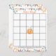 "Un petit citrouille est en route. Célébrez avec ce citrouille de dessins animés sur le thème du baby shower ! Aquarelle caricature kawaii citrouille avec casquette d'automne (casquette) et feuilles d'automne. Au verso de la carte se trouvent les feuilles d'automne.