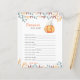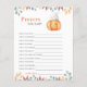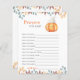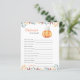"Un petit citrouille est en route. Célébrez avec ce citrouille de dessins animés sur le thème du baby shower ! Aquarelle caricature kawaii citrouille avec casquette d'automne (casquette) et feuilles d'automne. Au verso de la carte se trouvent les feuilles d'automne.