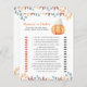 "Un petit citrouille est en route. Célébrez avec ce citrouille de dessins animés sur le thème du baby shower ! Aquarelle caricature kawaii citrouille avec casquette d'automne (casquette) et feuilles d'automne. Au verso de la carte se trouvent les feuilles d'automne.