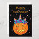 Jack-o'-lantern amusant dans la couronne de fleurs avec corne unicorne coloré orange bleu violet imprimé.
