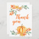 Remerciez vos invités d'être venus à votre occasion automnale, qu'il s'agisse d'une baby shower, d'une fête de mariage, d'un mariage ou d'un anniversaire. Cette carte présente une citrouille aquarelle avec des feuilles colorées d'automne. Ajoutez votre message au verso ou laissez-le en blanc et écrivez un message à vos invités à la main.