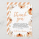 Envoyez une note chaleureuse à ce carte de remerciements citrouille rustique. Doté de citrouilles d'aquarelle et de fleurs d'automne, ce charmant design d'automne est parfait pour remercier les clients après une petite fête de premier anniversaire citrouille. Personnalisez avec le nom et le message de votre enfant afin de créer un saké doux pour vos amis et votre famille.