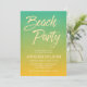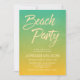 Cette invitation citrus Beach Party comporte un arrière - plan dégradé vert et orange clair qui a un aspect subtil grunge/patiné avec le mot "Beach Party" dans une police de script de brosse tendance. Les couleurs vives des agrumes en font une excellente invitation pour un anniversaire, un anniversaire ou toute célébration à la plage. Personnalisez cette invitation en remplaçant le texte de l'espace réservé dans le modèle. Pour plus d'options comme changer la police et sa taille, cliquez sur le bouton "Customiser". *Veuillez noter que le filigrane Zazzle qui apparaît dans l'aperçu du zoom n'apparaîtra PAS sur le produit imprimé final © Rosewood et Citrus