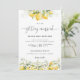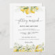 Citrus Citron Faire-part de mariage. Cette invitation à la douche de mariage élégante et élégante présente de magnifiques aquarelles peintes à la main en fleurs de citron. Trouvez les articles correspondants dans la collection Florale Citrus Citrus Lemon and Greenery.