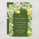 Invitations estivales modernes avec un centre d'arche vert foncé, un éventail de citrons et de citrons, feuillage botanique et un élégant modèle de mariage.