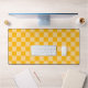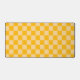 A vibrant orange and beige checkerboard pattern with alternating bright and muted squares, creating a lively and symmetrical design with a warm, energetic tone.