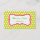 Citron vert et rose donnent un style rétro carte de visite. Customisez ce carte de visite mignon pour répondre à vos besoins. Le design est de l'art original. Utilisez ce carte de visite amusant pour un spa, salon, salon de coiffure, maquilleur, floriste de salon d'ongles, préscolaire, école, babysitting, bonbons, glace, garderie, garde d'enfants, décoration maison, planificateur d'événements, boulangerie, boutique, mode, vêtements, etc...