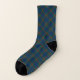 Socks with the Agnew clan tartan, a traditional Scottish plaid pattern in green and royal blue, with bright red accents. Available in two unisex sizes.