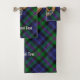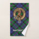Clan Baird badge crête entouré d'une sangle et boucle sur l'arrière - plan tartan. Texte personnalisé sur chaque serviette.