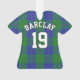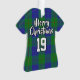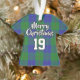 Célébrez Noël avec cet ornement unique en forme de jersey avec le plaid Clan Barclay chasse tartan complet avec numéro personnalisable représentant l'année.