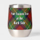 Clan Boyd badge crête entouré d'une sangle et boucle sur l'arrière - plan tartan. Texte personnalisé des deux côtés.