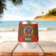 Clan Bruce badge crête entouré d'une sangle et boucle sur l'arrière - plan tartan. Texte personnalisé des deux côtés.