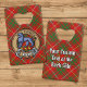 Clan Bruce badge crête entouré d'une sangle et boucle sur l'arrière - plan tartan. Texte personnalisé des deux côtés.