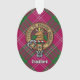 Clan Crawford crête badge entouré d'une sangle et boucle sur l'arrière - plan tartan. Texte personnalisé des deux côtés.