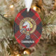 Clan Cunningham crête badge entouré d'une sangle et boucle sur l'arrière - plan tartan. Texte personnalisé des deux côtés.