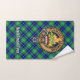 Clan Douglas crête badge entouré d'une sangle et boucle sur l'arrière - plan tartan. Texte personnalisé sur chaque serviette.