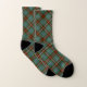 Chaussettes avec tartan de chasse familiale pour Clan Fraser et ses sépts, y compris Magruder et Oliver. motif écossais vintage en plaid datant de 1842, brun, bleu et vert vif, avec des accents blanc et rouge.