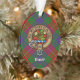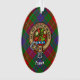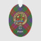 Le badge de crête Clan Fraser entouré d'une courroie et boucle sur l'arrière - plan tartan. Texte personnalisé des deux côtés.