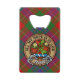 Le badge de crête Clan Fraser entouré d'une courroie et boucle sur l'arrière - plan tartan. Texte personnalisé des deux côtés.