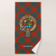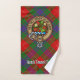 Le badge de crête Clan Fraser entouré d'une courroie et boucle sur l'arrière - plan tartan. Texte personnalisé sur chaque serviette.
