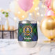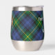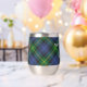 Clan Gordon crête badge entouré d'une sangle et boucle sur l'arrière - plan tartan. Texte personnalisé des deux côtés.