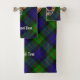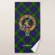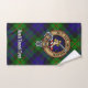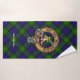 Clan Gunn badge crête entouré d'une sangle et boucle sur l'arrière - plan tartan. Texte personnalisé sur chaque serviette.