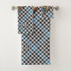 Clan Haig crest badge surrounded by a strap and buckle over check tartan background. Custom text on each towel.