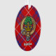 Clan Hamilton crête badge entouré d'une sangle et boucle sur l'arrière - plan tartan rouge. Texte personnalisé des deux côtés.