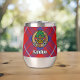 Clan Hamilton crête badge entouré d'une sangle et boucle sur l'arrière - plan tartan rouge. Texte personnalisé des deux côtés.