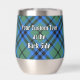 Clan Keith badge de crête entouré d'une sangle et boucle sur l'arrière - plan tartan. Texte personnalisé des deux côtés.