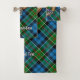 Clan Kirkpatrick insigne crête entouré d'une sangle et boucle sur l'arrière - plan tartan. Texte personnalisé sur chaque serviette.