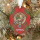 Clan MacAulay badge crête entouré d'une sangle et boucle sur l'arrière - plan tartan. Texte personnalisé des deux côtés.