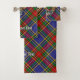 Clan MacBeth badge de crête entouré d'une sangle et boucle sur l'arrière - plan tartan. Texte personnalisé sur chaque serviette.