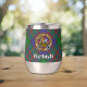 Clan MacDonald badge crête entouré d'une sangle et boucle sur l'arrière - plan tartan. Texte personnalisé des deux côtés.