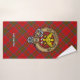 Clan MacDonald de l'insigne crête de Keppoch entouré d'une sangle et boucle sur l'arrière - plan tartan. Texte personnalisé sur chaque serviette.