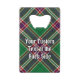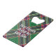 Clan MacFarlane badge de crête entouré d'une sangle et boucle sur l'arrière - plan tartan de chasse moderne. Texte personnalisé des deux côtés.