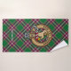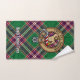 Clan MacFarlane écusson de crête entourée d'une sangle et boucle sur l'arrière - plan tartan de chasse moderne. Texte personnalisé sur chaque serviette.
