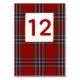 Elégante carte de numéro de table de mariage faite dans le classique rouge Clan MacFarlane tartan plaid motif. Personnalisez le numéro de chaque table à la réception. Des produits mariages correspondants sont disponibles.