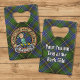 Clan MacInnes crête badge entouré d'une sangle et boucle sur l'arrière - plan tartan. Texte personnalisé des deux côtés.