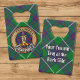 Clan MacIntyre badge crête entouré d'une sangle et boucle sur l'arrière - plan tartan. Texte personnalisé des deux côtés.