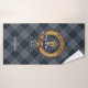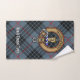 Clan MacKay crête badge entouré d'une sangle et boucle sur l'arrière - plan tartan bleu. Texte personnalisé sur chaque serviette.