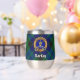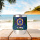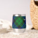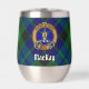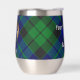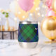 Clan MacKay badge crête entouré d'une sangle et boucle sur l'arrière - plan tartan. Texte personnalisé des deux côtés.