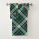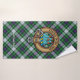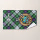 Clan MacKenzie badge crête entouré d'une sangle et boucle sur l'arrière - plan tartan habillé. Texte personnalisé sur chaque serviette.