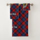Clan MacLachlan badge de crête entouré d'une sangle et boucle sur l'arrière - plan tartan. Texte personnalisé sur chaque serviette.