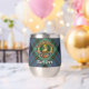 Clan MacLaren badge crête entouré d'une sangle et boucle sur l'arrière - plan tartan. Texte personnalisé des deux côtés.
