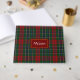 Livre d'invité coloré à toutes fins fait dans le classique vert, bleu, rouge, jaune, noir et blanc clan MacLean tartan plaid motif. Une zone de texte rouge et or, à l'avant du livre, a du texte personnalisé blanc prêt à être personnalisé.