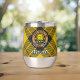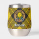 Clan MacLeod de l'insigne crête de Lewis entouré d'une sangle et boucle sur l'arrière - plan tartan. Texte personnalisé des deux côtés.