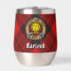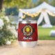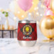 Clan MacLeod de l'insigne crête de Raasay entouré d'une sangle et boucle sur l'arrière - plan tartan. Texte personnalisé des deux côtés.