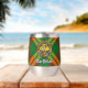 Clan MacMillan badge de crête entouré d'une sangle et boucle sur l'arrière - plan tartan. Texte personnalisé des deux côtés.